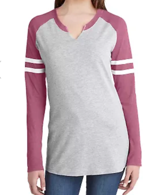 Unleash your inner spirit with our varsity long sleeve tees! With a women's fit and notched neck v neckline and long sleeves, these tees are perfect for any occasion. Choose your style, choose your vibe!