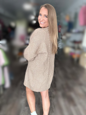 Wrap yourself in warmth and style with the Snuggle Season Sweater Dress, your new go-to for fall and winter coziness! This chic cable knit sweater dress features a trendy drop shoulder design and a loose fit that effortlessly blends comfort with fashion. Perfect for layering with your favorite boots or tights, this versatile dress will have you feeling cozy whether you're lounging at home or out on the town.