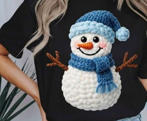 DOORBUSTER : Blue Hat Snowman Faux Yarn Crewneck