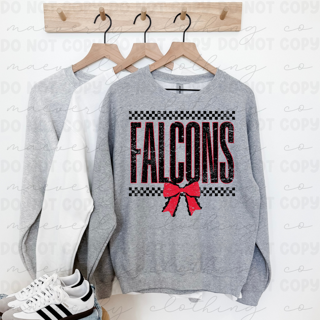 Field Falcons Checkered Bow Mascot Tee/Crewneck