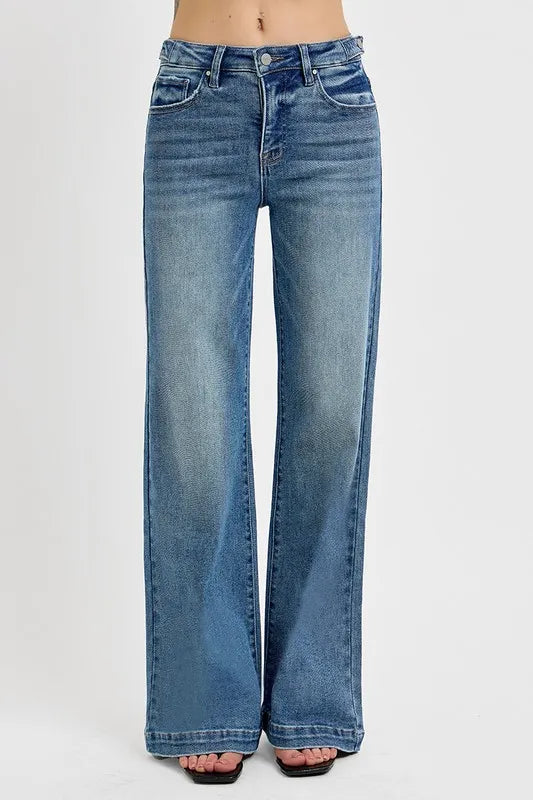 RISEN Tummy Control High Rise Wide Adjustable Waist Band Jeans