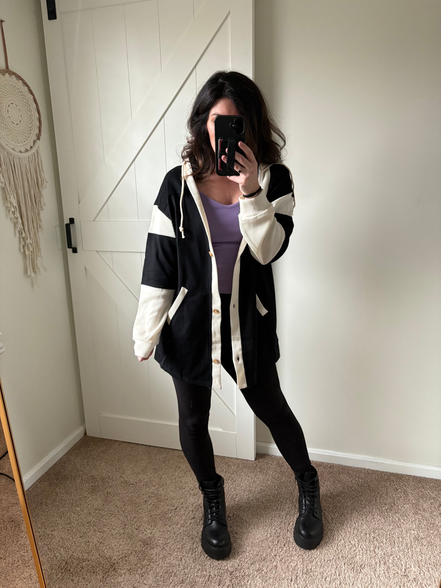The Weekend Stroll Hooded Jacket is the perfect throw-on-and-go layer. With its soft knit feel, contrast colorblocking, functional buttons, and cozy hood, it’s equal parts comfy and cute. Great for school drop-off, errands, or layering over your favorite basics.