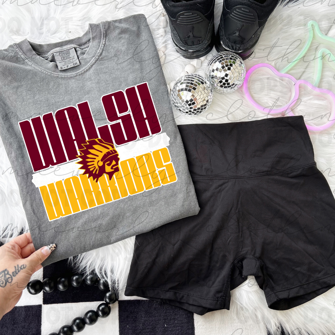 Walsh Warriors Bold Block Stack Tee/Crewneck