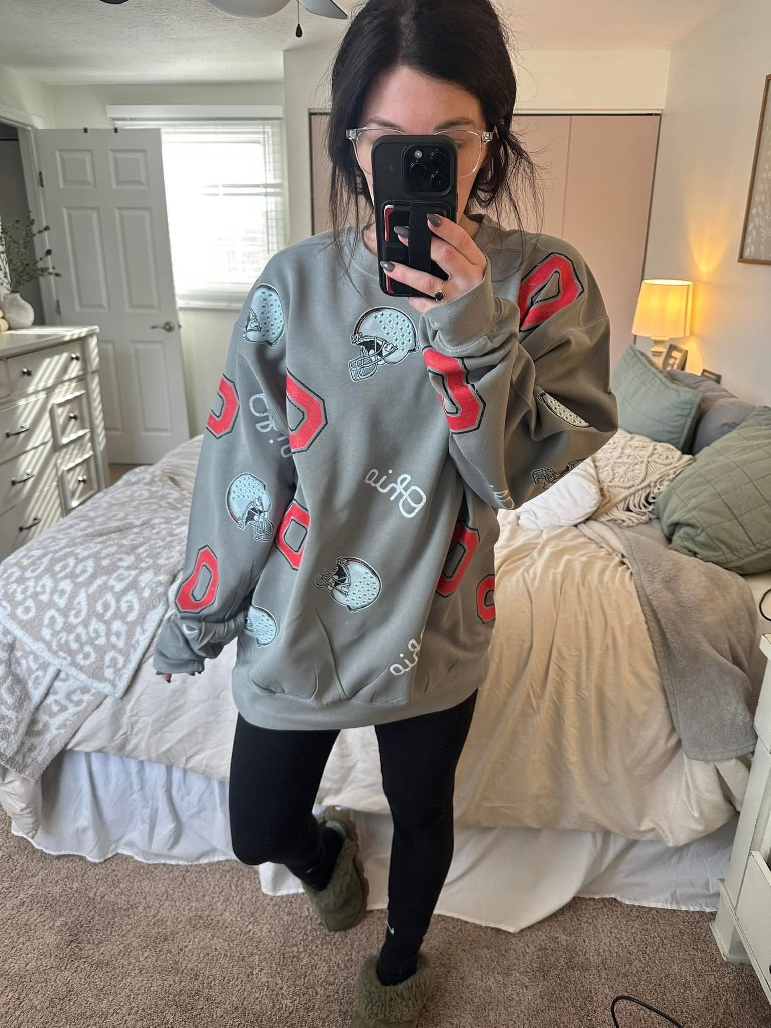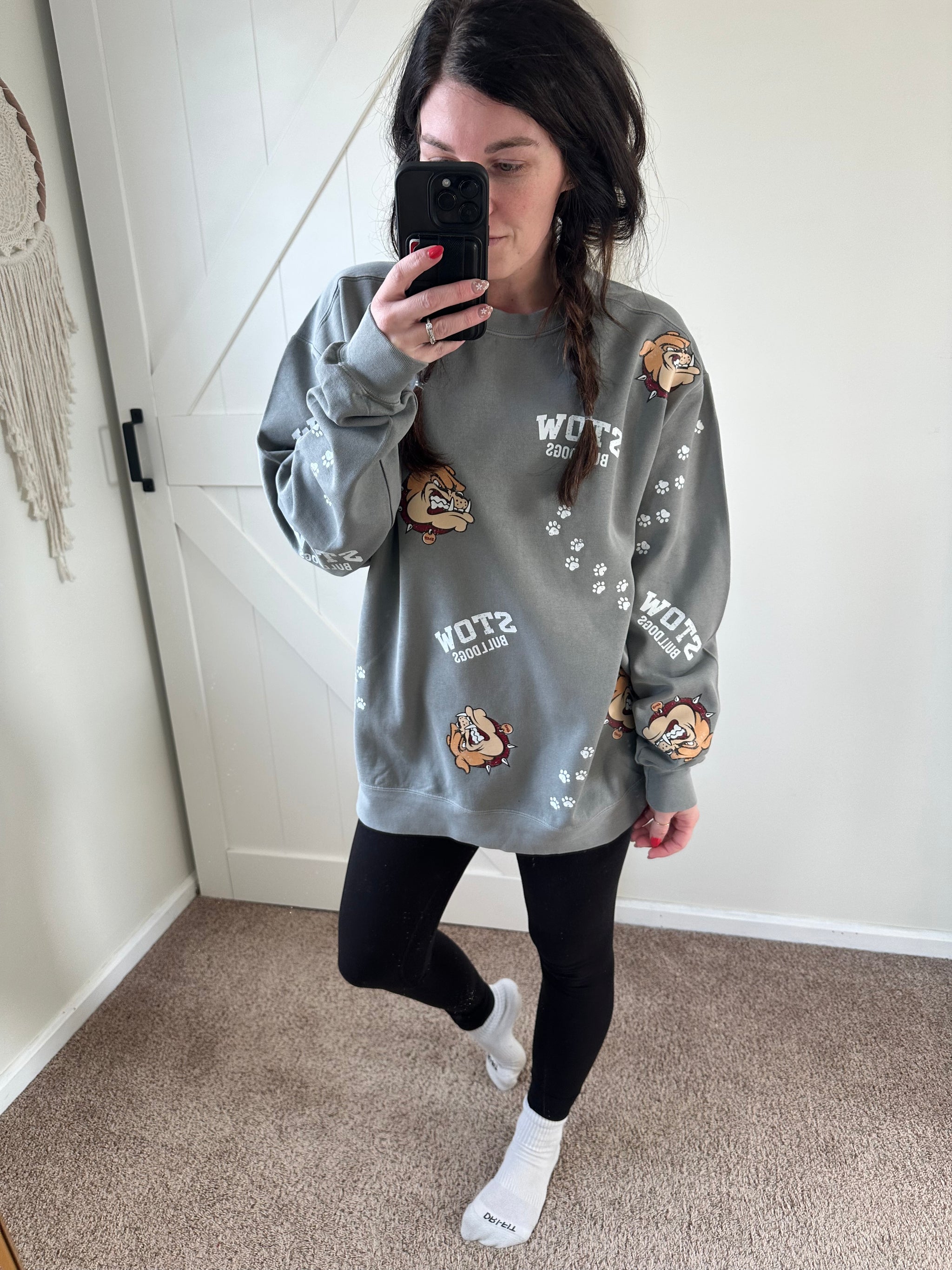 Custom Distressed All Over Crewneck Sweatshirt - Your School, Your Mascot