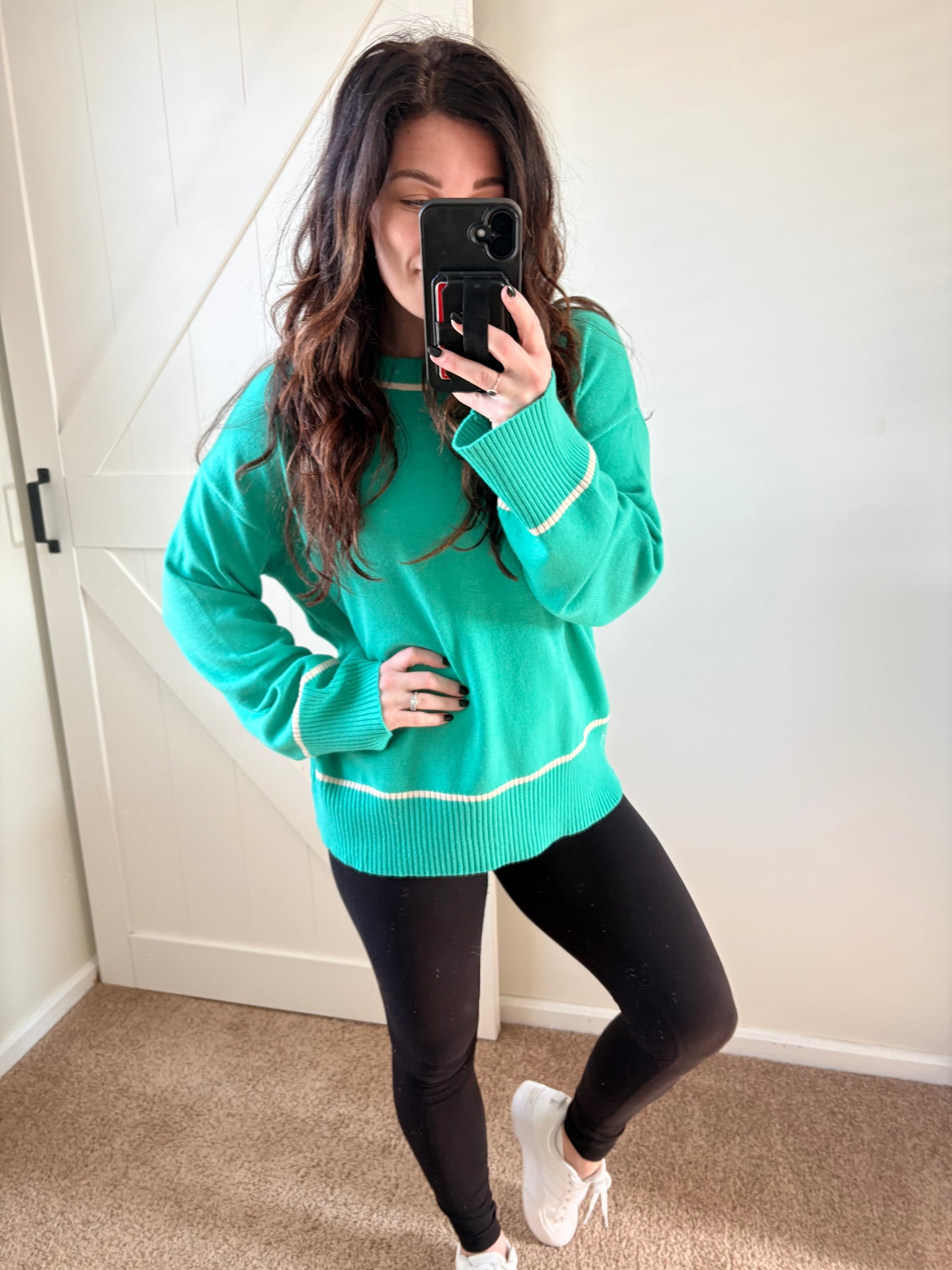 Add a pop of color to your cozy season lineup with our Contrast Trim Knit Sweater. This soft knit features a relaxed fit, classic crew neckline, and ribbed hem + cuffs finished with a subtle contrast stripe detail for that boutique touch. It’s easy to dress up with denim or keep casual with leggings for a comfy, everyday look.