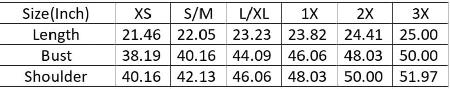 Shirt colors and size charts are at the end of each listing.